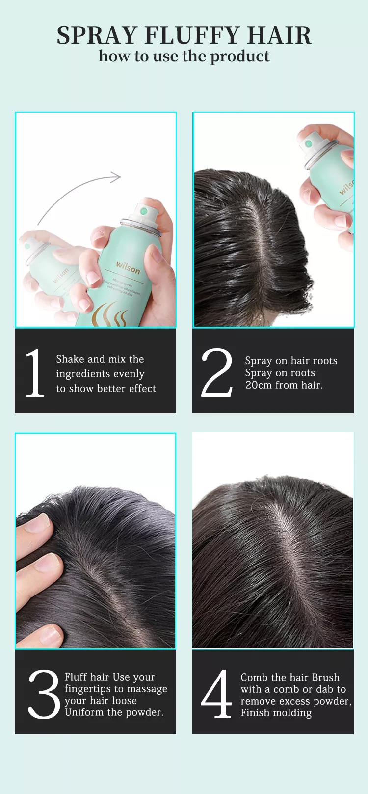 Wilson Instant no-wash cool tør shampoo spray unikke formel er rig på naturlige ingredienser, fri for skadelige kemikalier, blid og ikke-irriterende hovedbund, effektivt absorberer overskydende olie, så håret for at genoprette rent og let. Uanset om du er på rejse, i en nødsituation eller efter en travl dag, er Wilson Instant Leave-In Cool Dry Shampoo et praktisk og praktisk hårplejeværktøj til at holde dit hår friskt og rent, og dit hår ser godt ud og føles godt når som helst og hvor som helst.
