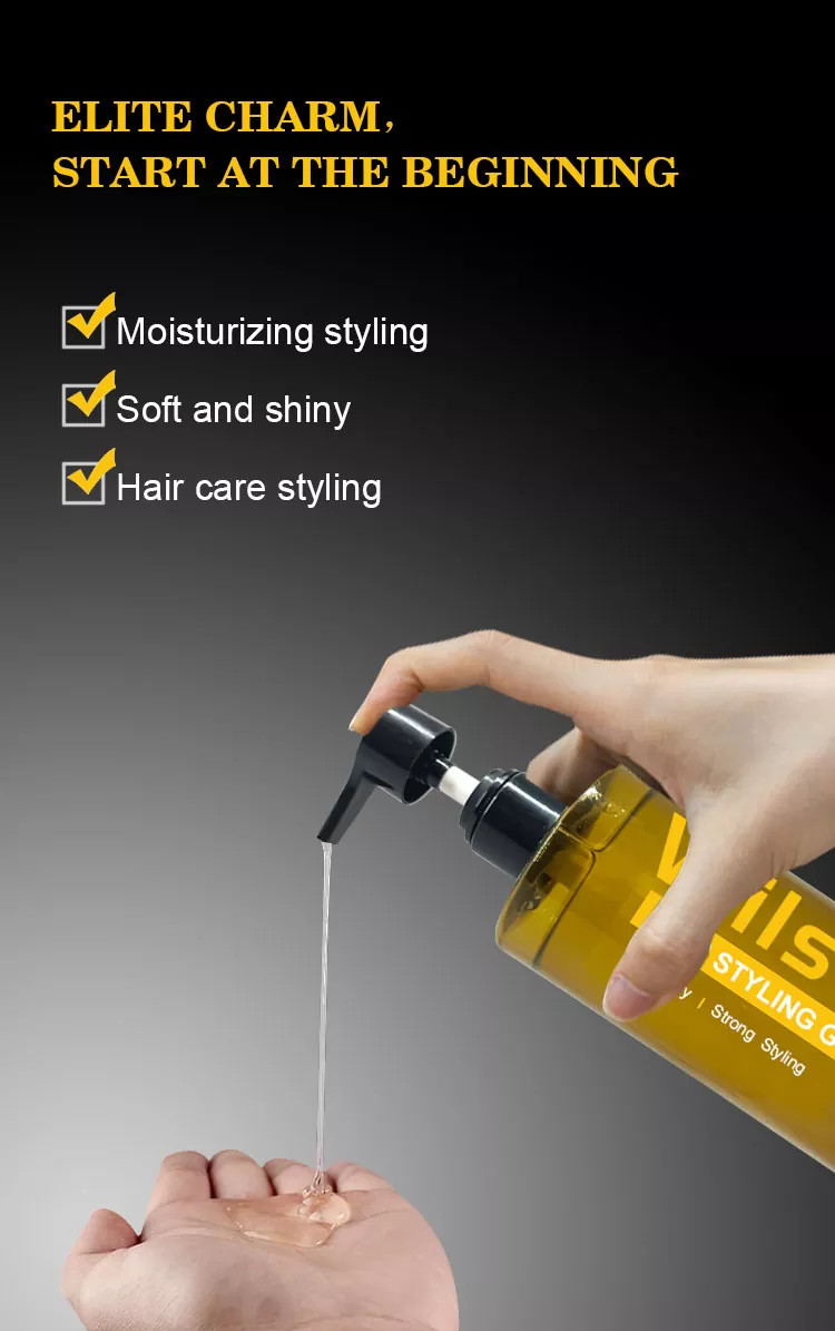 Wilson Men's Ultra Smooth Seamless Hair Styling Gel kosmetik refererer til hårstyling og modificerende effekt af kosmetik, sprayet eller påført håret, opløsningsmidlet fordampning og tørring på håret for at danne en gennemsigtig film, så hårfibrene hærder og opretholder formen til formålet for at opfylde behovene i forskellige frisurer.