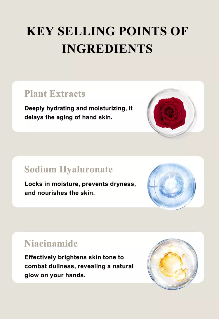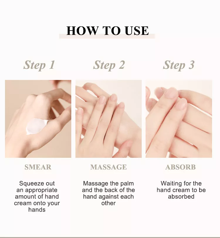 Efter brug af Quick Absorption Immediate Relief Hand Cream bliver huden mere sart, fine linjer reduceres, og vandindholdet i huden øges.Håndcreme er velegnet til forskellige lejligheder i dagligdagen, især til dem, der ofte vasker hænder, kommer i kontakt med rengøringsmidler eller udsættes for tørre, kolde omgivelser. Uanset om det er til hjemmepleje, kontormiljøer eller udendørsaktiviteter, rettidig påføring af håndcreme beskytter effektivt dine hænder og bevarer en sund, ungdommelig hud.
